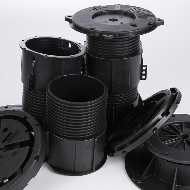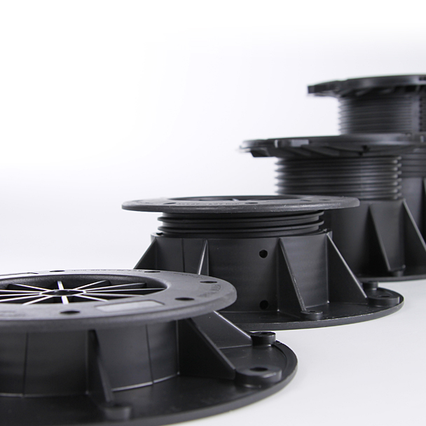 Ένας μηχανισμός βιδωτού γρύλλου με ενσωματωμένους αποστάτες επιτρέπει την κάθετη ρύθμιση ώστε το επίπεδο εγκατάστασης μιας πλατφόρμας να ανυψωθεί από 17 έως 620 χιλιοστά, με ακρίβεια χιλιοστού. Στα βάθρα μπορούν επίσης να